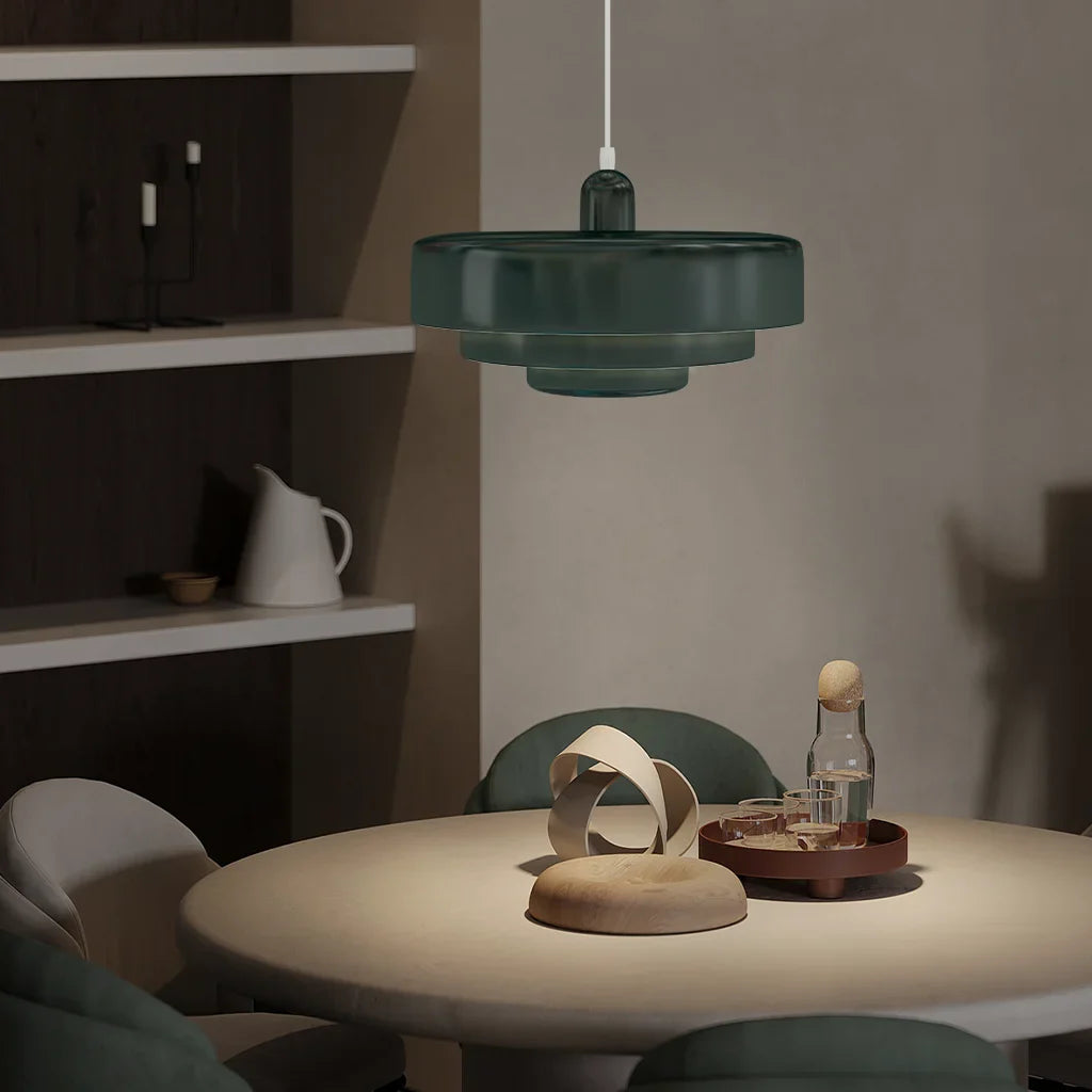 The Veloraine pendant light transforms bold colour and sculptural geometry into a modern design feature that instantly energises a space. Its triple-layer disc structure, inspired by Nordic minimalism and Bauhaus precision, creates depth through overlapping forms while the vibrant macaron palette adds personality without overwhelming the room. Whether styled above a dining table, kitchen island or creative workspace, Veloraine delivers a striking yet balanced presence. Crafted from high-quality aluminium and iron, Veloraine diffuses light through its layered hemispherical shades to create a bright yet softened glow. The adjustable 150cm suspension allows tailored positioning for various ceiling heights, while the E27 fitting ensures practical compatibility. Designed to blend effortlessly into contemporary interiors, Veloraine is where colour meets architectural simplicity.