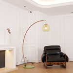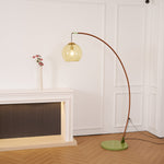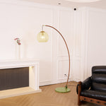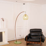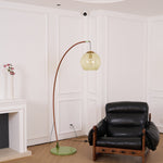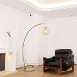 Veloriah | Modern Arc Floor Lamp with Amber Glass Globe for Living Room Lighting