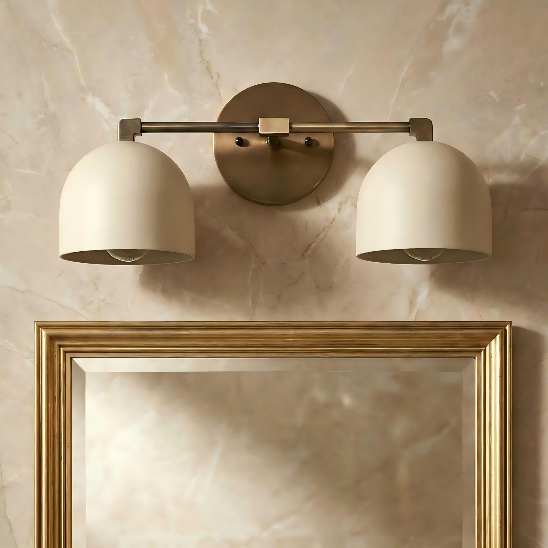 Orinae | Scandinavian Vanity Wall Light with Double Dome Shades and Brass Frame for Bathrooms